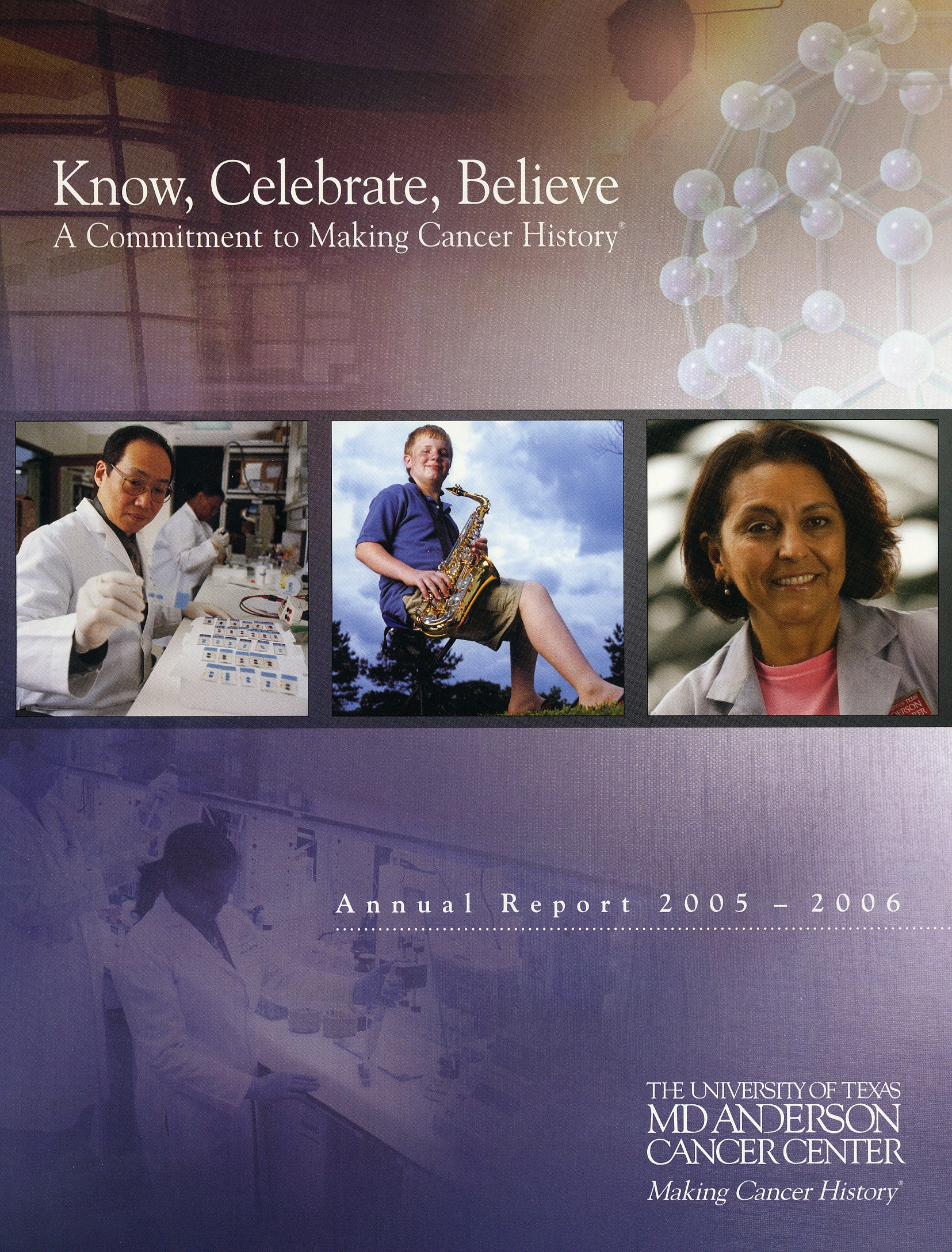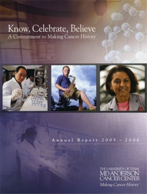 Download This Year's Entry Form Annual Report Highlights: View Competition Class Performance | Company Name: | M.D. Anderson Cancer Center    | | Company Web Site: | www.mdanderson.org | | Annual Revenue: | $1+ Billion | | Employee Base: | 10,000+ Employees | | Core Industry: | Non-Profits | Approximate Number of Pages: (Narrative/Financial Percent) | 76 (73.7%/26.3%) | | Award Garnered: | Silver | | | | Judging Results | | First Impression: | | | Report Cover: | | | Letter to Shareholders: | | | Report Narrative: | | | Report Financials: | | | Creativity: | | | Message Clarity: | | | Information Accessibility: | | | Total Score: | |