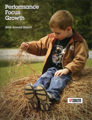 Download This Year's Entry Form Annual Report Highlights: View Competition Class Performance | Company/Agency Name: | Tractor Supply Co.    / Financial Dynamics Business Communications | | Company/Agency Web Site: | www.tsco / www.fd.com | | Company Ticker Symbol: | TSCO | | Annual Revenue: | $1+ Billion | | Employee Base: | 1,000 - 10,000 Employees | | Core Industry: | Retailing | Approximate Number of Pages: (Narrative/Financial Percent) | 66 (15.2%/84.8%) | | Award Garnered: | Bronze | | | | Judging Results | | First Impression: | | | Report Cover: | | | Letter to Shareholders: | | | Report Narrative: | | | Report Financials: | | | Creativity: | | | Message Clarity: | | | Information Accessibility: | | | Total Score: | |