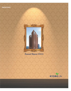Download This Year's Entry Form Annual Report Highlights: View Competition Class Performance | Company/Agency Name: | Kyobo Life Insurance Co., Ltd.    / IR BizNet, Inc. | | Company/Agency Web Site: | www.kyobo.co.kr / www.irbiznet.com | | Annual Revenue: | $1+ Billion | | Employee Base: | 100 - 1,000 Employees | | Core Industry: | Insurance | Approximate Number of Pages: (Narrative/Financial Percent) | 118 (39.0%/61.0%) | | Notable Feature(s): | Glossary, Organizational Timeline | | Award Garnered: | Gold | | | | Judging Results | | First Impression: | | | Report Cover: | | | Letter to Shareholders: | | | Report Narrative: | | | Report Financials: | | | Creativity: | | | Message Clarity: | | | Information Accessibility: | | | Total Score: | |