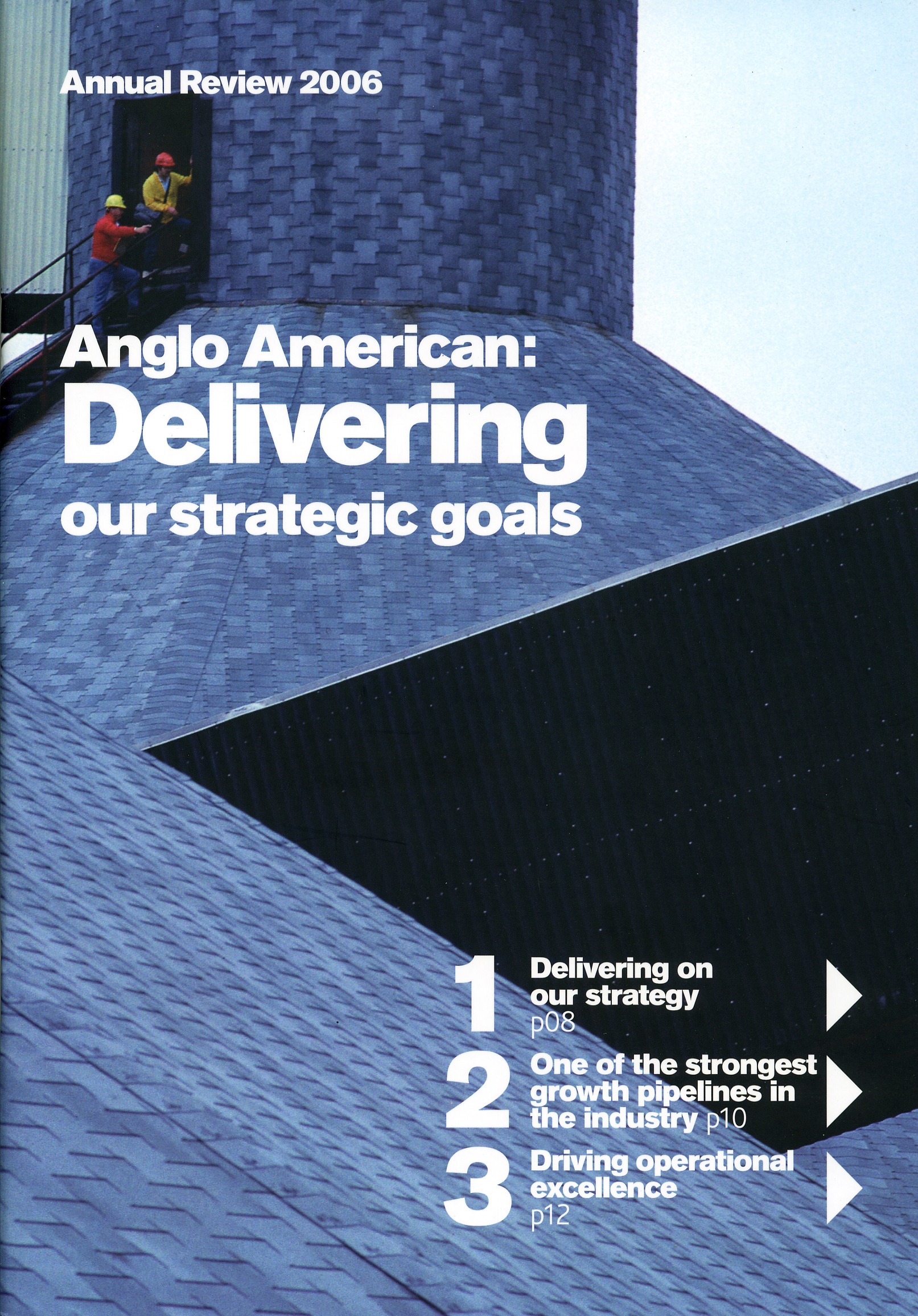Download This Year's Entry Form Annual Report Highlights: View Competition Class Performance | Company/Agency Name: | Anglo American PLC    / Addison Corporate Marketing | | Company/Agency Web Site: | www.angloamerican.co.uk / www.addison.co.uk | | Annual Revenue: | $1+ Billion | | Employee Base: | 10,000+ Employees | | Core Industry: | Energy - Oil, Gas & Consumable Fuels | Approximate Number of Pages: (Narrative/Financial Percent) | 196 (18.4%/81.6%) | | Notable Feature(s): | Fold-Out Cover, 10-K / MD&A Pull-Out(s) | | Award Garnered: | Gold | | Top 100 Rank: | 47 | | | | Judging Results | | First Impression: | | | Report Cover: | | | Letter to Shareholders: | | | Report Narrative: | | | Report Financials: | | | Creativity: | | | Message Clarity: | | | Information Accessibility: | | | Total Score: | |