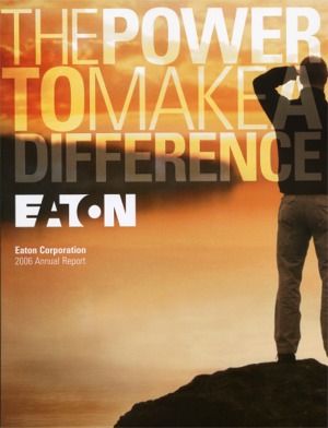 Download This Year's Entry Form Annual Report Highlights: View Competition Class Performance | Company Name: | Eaton Corporation    | | Company Web Site: | www.eaton.com | | Company Ticker Symbol: | ETN | | Annual Revenue: | $1+ Billion | | Employee Base: | 10,000+ Employees | | Core Industry: | Conglomerates, Holding Co., Div. Invest. | Approximate Number of Pages: (Narrative/Financial Percent) | 56 (42.9%/57.1%) | | Notable Feature(s): | Mailback / Business Reply Card | | Award Garnered: | Honors | | | | Judging Results | | First Impression: | | | Report Cover: | | | Letter to Shareholders: | | | Report Narrative: | | | Report Financials: | | | Creativity: | | | Message Clarity: | | | Information Accessibility: | | | Total Score: | |