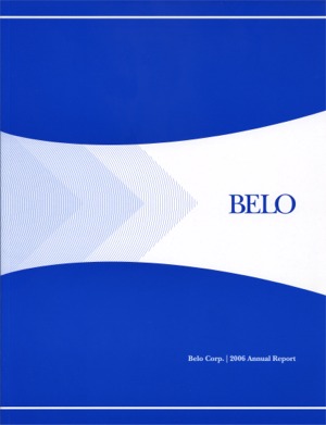 Annual Report Highlights: View Competition Class Performance | Company/Agency Name: | Belo Corporation    / Eisenberg and Associates | | Company/Agency Web Site: | www.belocorp.com / www.eisenberg-inc.com | | Company Ticker Symbol: | BLC | | Annual Revenue: | $1+ Billion | | Employee Base: | 1,000 - 10,000 Employees | | Core Industry: | Media | Approx. Number of Pages: (Narrative/Financial Percent) | 86 (16.3%/83.7%) | | Notable Feature(s): | Fold-Out Cover | | Award Garnered: | Honors | | | | Judging Results | | First Impression: | | | Report Cover: | | | Letter to Shareholders: | | | Report Narrative: | | | Report Financials: | | | Creativity: | | | Message Clarity: | | | Information Accessibility: | | | Total Score: | |