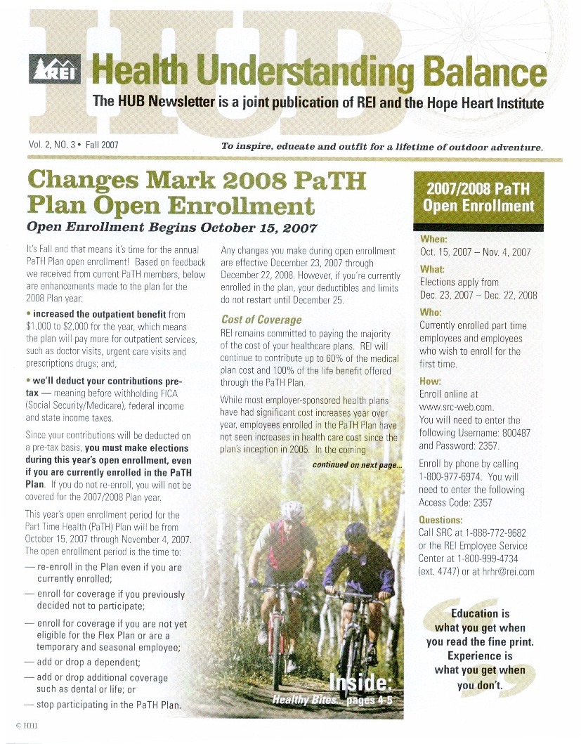 Company/Agency Web Site: www.rei.com  /  www.hopehealth.com