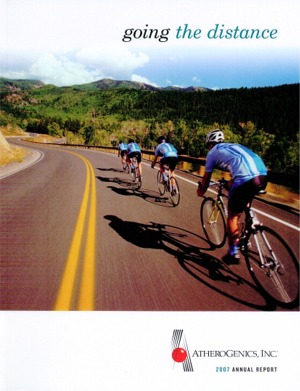 Annual Report Highlights: View Competition Class Performance | Company Name: | AtheroGenics, Inc.    | | Company Web Site: | www.atherogenics.com | | Company Ticker Symbol: | AGIX | | Annual Revenue: | Up to $10 million | | Employee Base: | Up to 100 Employees | | Core Industry: | Biotechnology | | Award Garnered: | Gold | | | | Judging Results | | First Impression: | | | Report Cover: | | | Letter to Shareholders: | | | Report Narrative: | | | Report Financials: | | | Creativity: | | | Message Clarity: | | | Information Accessibility: | | | Total Score: | |