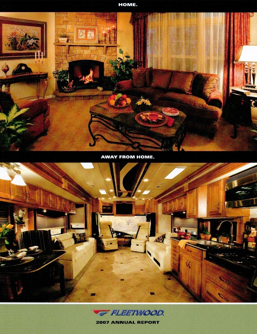 Annual Report Highlights: View Competition Class Performance | Company/Agency Name: | Fleetwood Enterprises    / Ervin Bell Marketing Communications | | Company/Agency Web Site: | www.fleetwood.com / www.ervinbell.com | | Company Ticker Symbol: | FLE | | Annual Revenue: | $1+ billion | | Employee Base: | 1,000 - 10,000 Employees | | Core Industry: | Automobiles & Components | | Award Garnered: | Silver | | | | Judging Results | | First Impression: | | | Report Cover: | | | Letter to Shareholders: | | | Report Narrative: | | | Report Financials: | | | Creativity: | | | Message Clarity: | | | Information Accessibility: | | | Total Score: | |