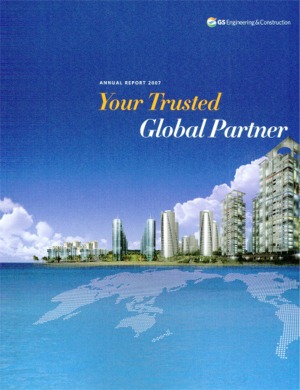 Annual Report Highlights: View Competition Class Performance | Company/Agency Name: | GS E&C    / IR KUDOS | | Company/Agency Web Site: | www.gsconst.co.kr/english / www.irkudos.co.kr | | Annual Revenue: | $1+ billion | | Employee Base: | 1,000 - 10,000 Employees | | Core Industry: | Business, Construction & Engineering Services | | Award Garnered: | Gold | | | | Judging Results | | First Impression: | | | Report Cover: | | | Letter to Shareholders: | | | Report Narrative: | | | Report Financials: | | | Creativity: | | | Message Clarity: | | | Information Accessibility: | | | Total Score: | |