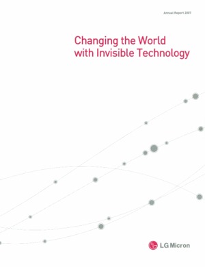 Annual Report Highlights: View Competition Class Performance | Company/Agency Name: | LG Micron    / IR KUDOS | | Company/Agency Web Site: | www.lgmicron.com / www.irkudos.co.kr | | Annual Revenue: | $100 million - $1 billion | | Employee Base: | 1,000 - 10,000 Employees | | Core Industry: | Technology -- Semiconductors & Equipment | | Award Garnered: | Silver | | | | Judging Results | | First Impression: | | | Report Cover: | | | Letter to Shareholders: | | | Report Narrative: | | | Report Financials: | | | Creativity: | | | Message Clarity: | | | Information Accessibility: | | | Total Score: | |