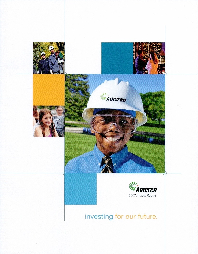 Annual Report Highlights: View Competition Class Performance | Company/Agency Name: | Ameren    / Obata Design | | Company/Agency Web Site: | www.ameren.com / www.obata.com | | Company Ticker Symbol: | AEE | | Annual Revenue: | $1+ billion | | Employee Base: | 10,000+ Employees | | Core Industry: | Utilities -- Gas | | Award Garnered: | Bronze | | | | Judging Results | | First Impression: | | | Report Cover: | | | Letter to Shareholders: | | | Report Narrative: | | | Report Financials: | | | Creativity: | | | Message Clarity: | | | Information Accessibility: | | | Total Score: | |