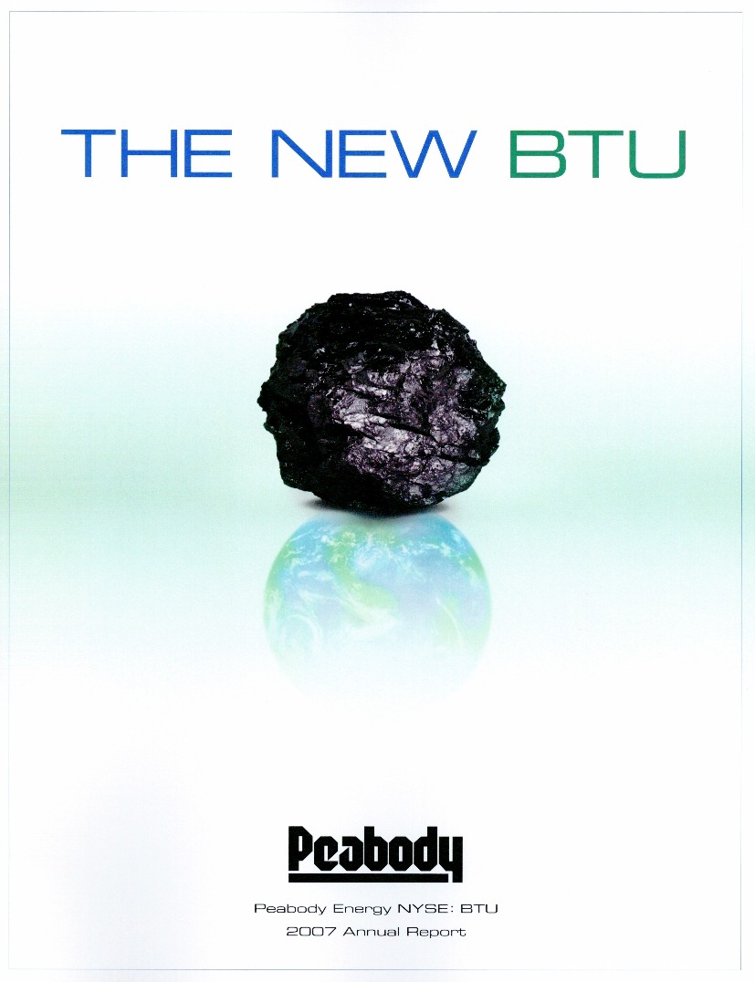 Annual Report Highlights: View Competition Class Performance | Company Name: | Peabody Energy    | | Company Web Site: | www.peabodyenergy.com | | Company Ticker Symbol: | BTU | | Annual Revenue: | $1+ billion | | Employee Base: | 1,000 - 10,000 Employees | | Core Industry: | Energy -- Oil, Gas & Consumable Fuels | | Award Garnered: | Gold | | | | Judging Results | | First Impression: | | | Report Cover: | | | Letter to Shareholders: | | | Report Narrative: | | | Report Financials: | | | Creativity: | | | Message Clarity: | | | Information Accessibility: | | | Total Score: | |