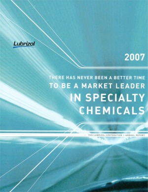 Annual Report Highlights: View Competition Class Performance | Company/Agency Name: | The Lubrizol Corporation    / Dix & Eaton | | Company/Agency Web Site: | www.lubrizol.com / www.dix-eaton.com | | Company Ticker Symbol: | LZ | | Annual Revenue: | $1+ billion | | Employee Base: | 1,000 - 10,000 Employees | | Core Industry: | Chemicals | | Award Garnered: | Platinum | | | | Judging Results | | First Impression: | | | Report Cover: | | | Letter to Shareholders: | | | Report Narrative: | | | Report Financials: | | | Creativity: | | | Message Clarity: | | | Information Accessibility: | | | Total Score: | |