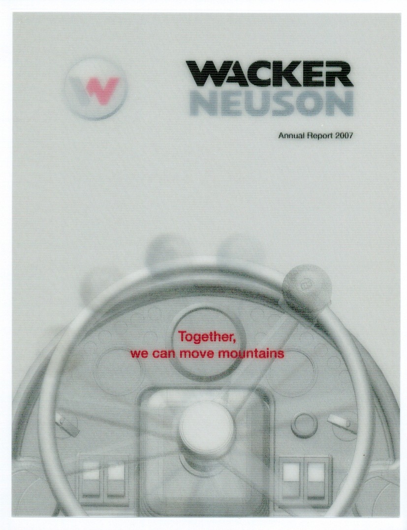 Annual Report Highlights: View Competition Class Performance | Company/Agency Name: | Wacker Construction Equipment AG    / Kirchhoff Consult AG | | Company/Agency Web Site: | www.wackerneuson.com / www.kirchhoff.de | | Company Ticker Symbol: | WAC | | Annual Revenue: | $100 million - $1 billion | | Employee Base: | 1,000 - 10,000 Employees | | Core Industry: | Equipment, Machinery & Instruments | | Award Garnered: | Platinum | | Top 100 Rank: | 19 | | | | Judging Results | | First Impression: | | | Report Cover: | | | Letter to Shareholders: | | | Report Narrative: | | | Report Financials: | | | Creativity: | | | Message Clarity: | | | Information Accessibility: | | | Total Score: | |