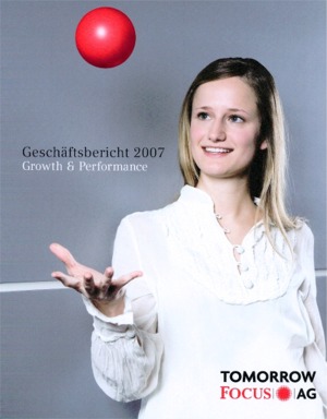 Annual Report Highlights: View Competition Class Performance | Company Name: | TOMORROW FOCUS AG    | | Company Web Site: | www.tomorrow-focus.de | | Annual Revenue: | $10 - $100 million | | Employee Base: | 100 - 1,000 Employees | | Core Industry: | Media | | Award Garnered: | Bronze | | | | Judging Results | | First Impression: | | | Report Cover: | | | Letter to Shareholders: | | | Report Narrative: | | | Report Financials: | | | Creativity: | | | Message Clarity: | | | Information Accessibility: | | | Total Score: | |