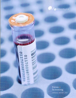 Annual Report Highlights: View Competition Class Performance | Company/Agency Name: | Epigenomics AG    / IR-One AG & Co. | | Company/Agency Web Site: | www.epigenomics.de / www.ir-1.com | | Company Ticker Symbol: | ECX | | Annual Revenue: | Up to $10 million | | Employee Base: | 100 - 1,000 Employees | | Core Industry: | Biotechnology | | Award Garnered: | Platinum | | | | Judging Results | | First Impression: | | | Report Cover: | | | Letter to Shareholders: | | | Report Narrative: | | | Report Financials: | | | Creativity: | | | Message Clarity: | | | Information Accessibility: | | | Total Score: | |