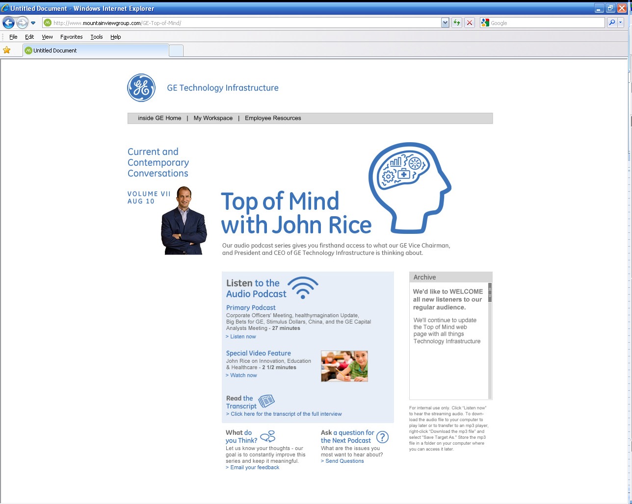Company/Agency Web Site: www.ge.com  /  www.mountainviewgroup.com