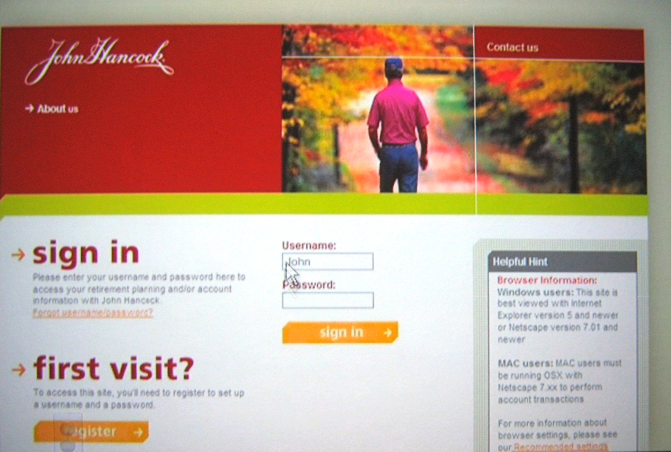 Entry Highlights: View Competition Class Performance | Company Name: | John Hancock Retirement Plan Services  | | Company Web Site: | www.johnhancock.com | | Company Ticker Symbol: | MFC1 | | Project Name: | The Participant Website Commercial & Demonstration | | Competition Category: | Web/E-Mail: Multimedia/Interactive | | Annual Revenue: | $1+ billion | | Employee Base: | 10,000+ Employees | | Award Garnered: | Bronze | | | | Judging Results | | First Impression: | | | Overall Narrative: | | | Overall Visual Design: | | | Creativity: | | | Message Clarity: | | | Perceived Relevance: | | | Total Score: | |