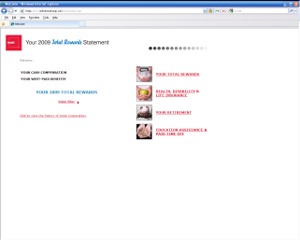 Entry Highlights: View Competition Class Performance | Company/Agency Name: | West  / Aon Consulting | | Project Name: | "Your 2009 Total Rewards Statement" | | Competition Category: | Web/E-Mail: Web/Intranet Site (List Under 'Special Instructions') | | Annual Revenue: | $1+ billion | | Employee Base: | 10,000+ Employees | | Award Garnered: | Bronze | | | | Judging Results | | First Impression: | | | Overall Narrative: | | | Overall Visual Design: | | | Creativity: | | | Message Clarity: | | | Perceived Relevance: | | | Total Score: | |