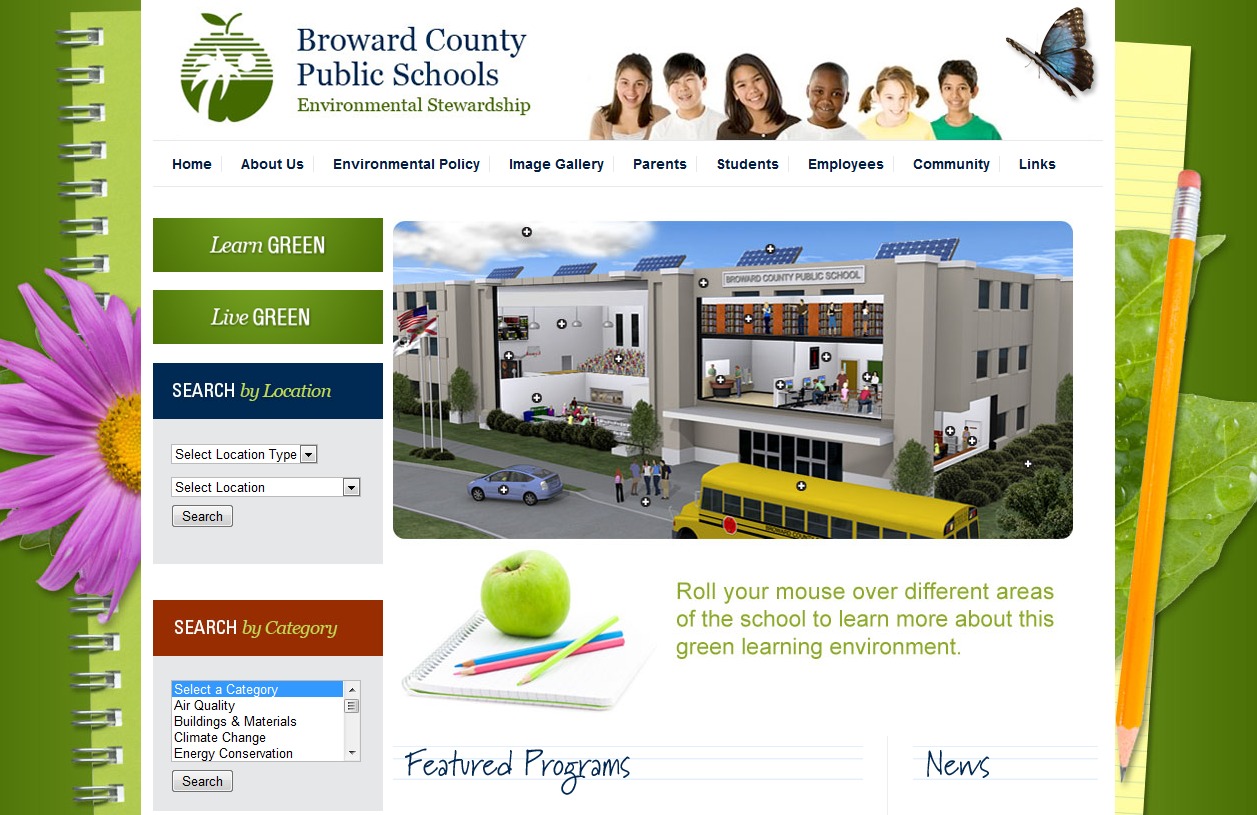 Entry Highlights:View Competition Class Performance Company/Agency Name:Broward County Public Schools  /The Environmental PR GroupCompany/Agency Web Site:Temporary Link: http://webapp.browardschools.com/gogreen/default.aspx Permanent Link (live on March 25): http://www.browardschoolsgogreen.com / www.eprgroup.com Project Name:"Live Green. Learn Green."Competition Category:Web/E-Mail: Web/Intranet Site (List Under 'Special Instructions')Annual Revenue:Up to $10 millionEmployee Base:Up to 100 EmployeesAward Garnered:PlatinumTop 50 Rank:7 Judging ResultsFirst Impression:29 out of 30Overall Narrative:10 out of 10Overall Visual Design:10 out of 10Creativity:20 out of 20Message Clarity:20 out of 20Perceived Relevance:10 out of 10Total Score:99 out of 100