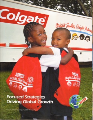Entry Highlights: View Competition Class Performance | Company/Agency Name: | Colgate-Palmolive  / RWI Design Inc. | | Company Web Site: | www.colgate.com | | Project Name: | The Colgate 2009 Annual Report: "Focused Strategies Driving Global Growth" | | Competition Category: | Print: Annual Report | | Annual Revenue: | $1+ billion | | Employee Base: | 10,000+ Employees | | Award Garnered: | Platinum | | Top 50 Rank: | 10 | | | | Judging Results | | First Impression: | | | Overall Narrative: | | | Overall Visual Design: | | | Creativity: | | | Message Clarity: | | | Perceived Relevance: | | | Total Score: | |