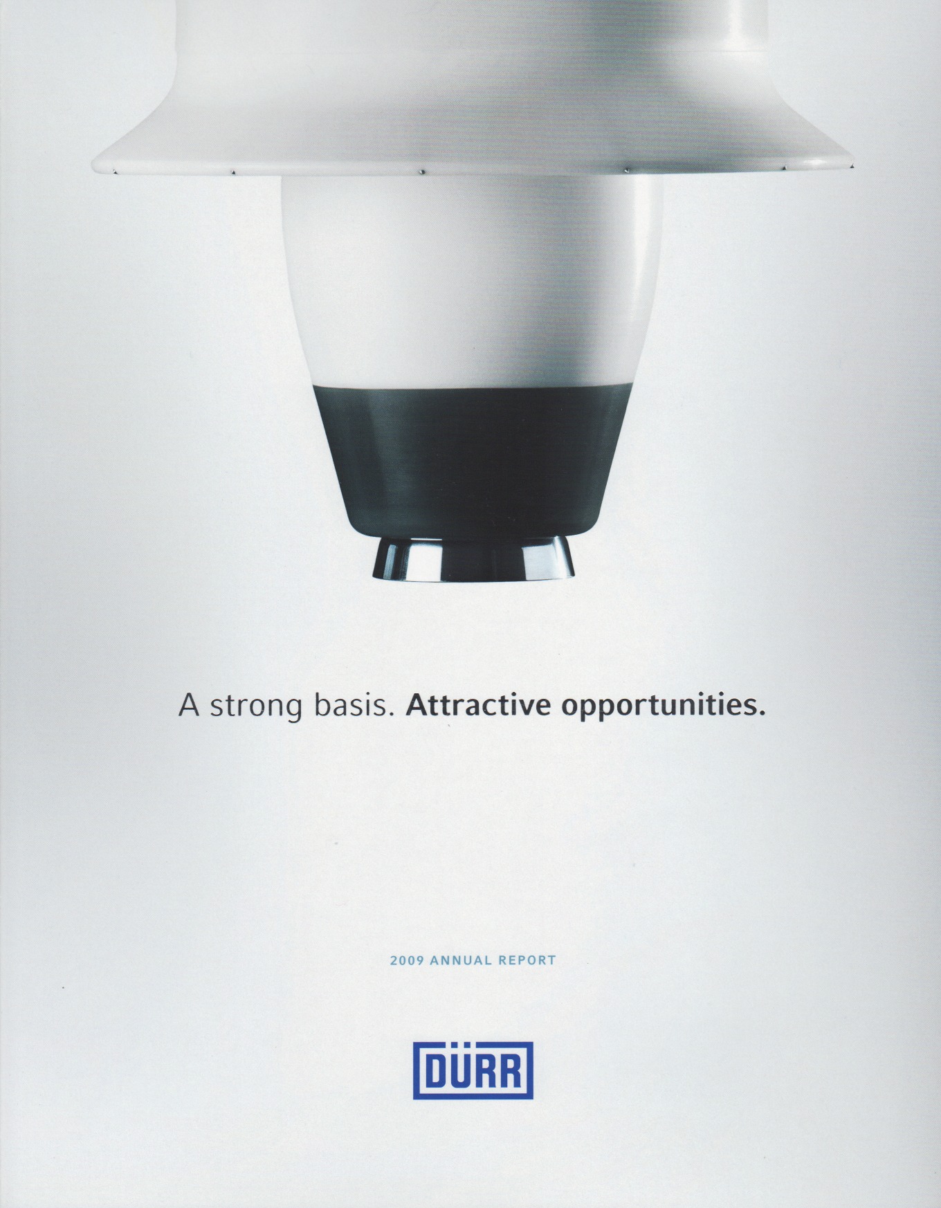 | Company/Agency Name: | Dürr AG  / 3st kommunikation GmbH | | Company/Agency Web Site: | www.durr.com / www.3st.de | | Annual Revenue: | $1 - $10 billion | | Employee Base: | 1,000 - 10,000 Employees | | Core Industry: | Business Services | | Type of Report: | Annual Report | | Title/Theme: | The Dürr Annual Report 2009: "A strong basis. Attractive opportunities." | | Award Garnered: | Gold | | | | Judging Results | | First Impression: | | | Report Cover: | | | Letter to Shareholders: | | | Report Narrative: | | | Report Financials: | | | Creativity: | | | Message Clarity: | | | Information Accessibility: | | | Total Score: | |