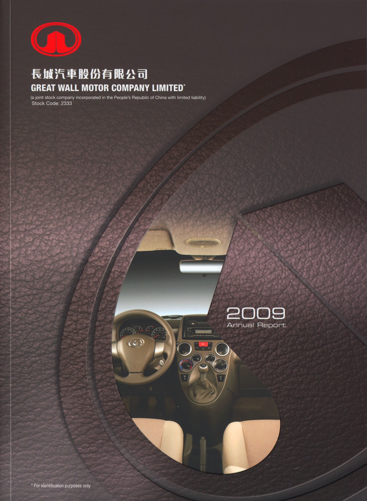 | Company/Agency Name: | Great Wall Motor Company Limited  / RR Donnelley Roman Financial | | Company/Agency Web Site: | www.gwm.com.cn / asiafinancial.rrd.com | | Annual Revenue: | $10+ billion | | Employee Base: | 10,000+ Employees | | Core Industry: | Automobiles, Components & Related | | Type of Report: | Annual Report | | Award Garnered: | Gold | | | | Judging Results | | First Impression: | | | Report Cover: | | | Letter to Shareholders: | | | Report Narrative: | | | Report Financials: | | | Creativity: | | | Message Clarity: | | | Information Accessibility: | | | Total Score: | |