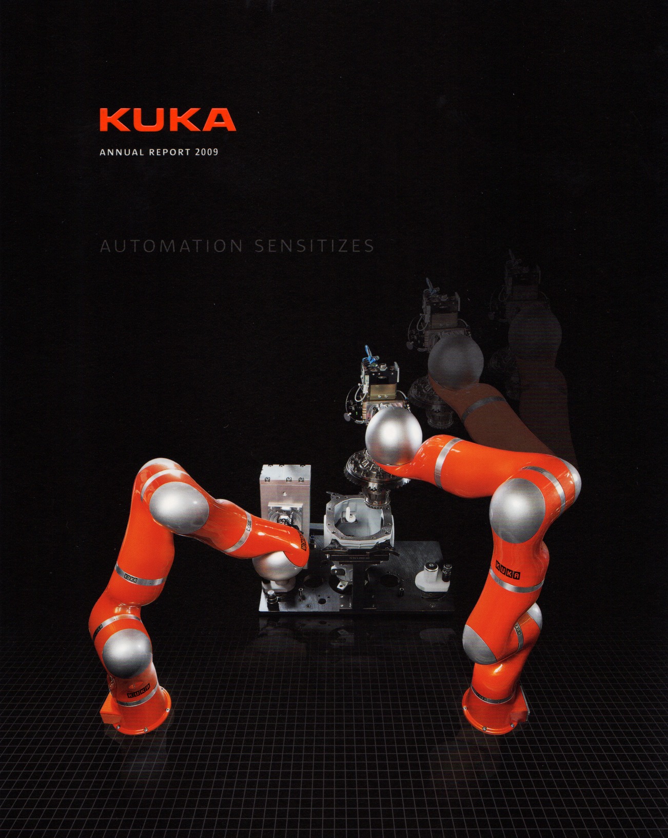 | Company/Agency Name: | KUKA AG  / 3st kommunikation GmbH | | Company/Agency Web Site: | www.kuka.com / www.3st.de | | Annual Revenue: | $100 million - $1 billion | | Employee Base: | 1,000 - 10,000 Employees | | Core Industry: | Business Services | | Type of Report: | Annual Report | | Title/Theme: | The KUKA Annual Report 2009: "Automation sensitizes" | | Award Garnered: | Silver | | | | Judging Results | | First Impression: | | | Report Cover: | | | Letter to Shareholders: | | | Report Narrative: | | | Report Financials: | | | Creativity: | | | Message Clarity: | | | Information Accessibility: | | | Total Score: | |