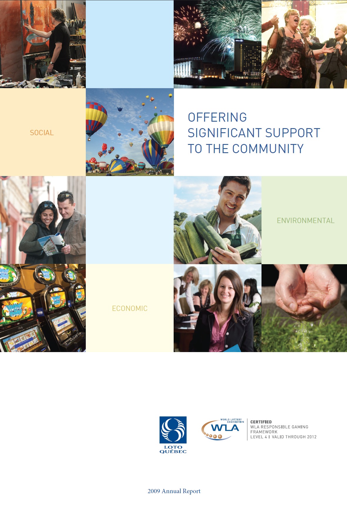 | Company/Agency Name: | LOTO-QUEBEC  / CG3 | | Company/Agency Web Site: | www.loto-quebec.com / www.cg3.ca | | Annual Revenue: | $1 - $10 billion | | Employee Base: | 1,000 - 10,000 Employees | | Core Industry: | Government — City/State/National | | Type of Report: | Annual Report | | Title/Theme: | "Offering Significant Support to the Community" | | Award Garnered: | Silver | | | | Judging Results | | First Impression: | | | Report Cover: | | | Letter to Shareholders: | | | Report Narrative: | | | Report Financials: | | | Creativity: | | | Message Clarity: | | | Information Accessibility: | | | Total Score: | |