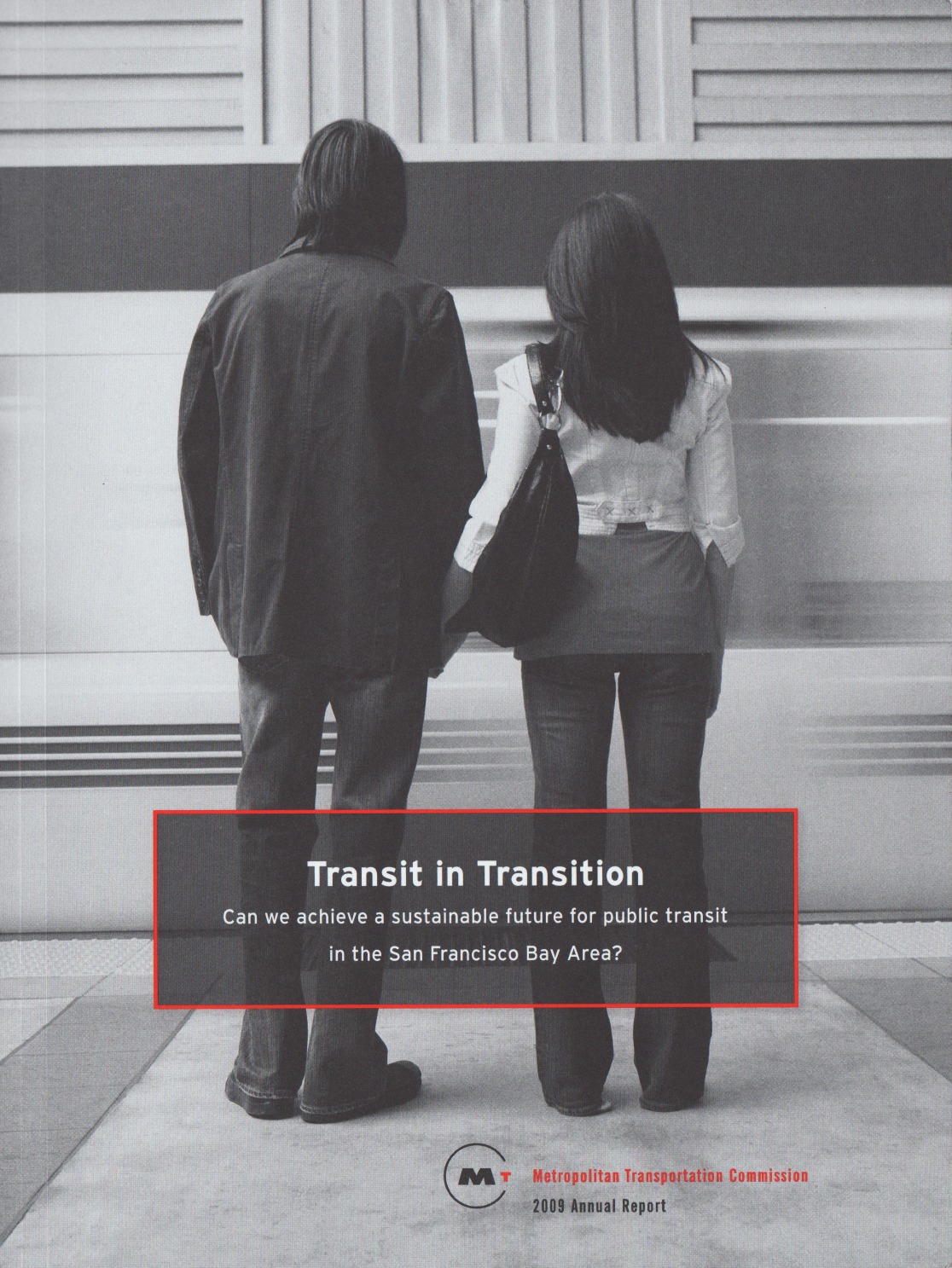| Company/Agency Name: | Metropolitan Transportation Commission  / Finger Design Associates | | Company/Agency Web Site: | www.mtc.ca.gov / www.fingerdesign.com | | Annual Revenue: | $100 million - $1 billion | | Employee Base: | 100 - 1,000 Employees | | Core Industry: | Government — City/State/National | | Type of Report: | Annual Report | | Title/Theme: | "Transit in Transition" | | Award Garnered: | Silver | | | | Judging Results | | First Impression: | | | Report Cover: | | | Letter to Shareholders: | | | Report Narrative: | | | Report Financials: | | | Creativity: | | | Message Clarity: | | | Information Accessibility: | | | Total Score: | |