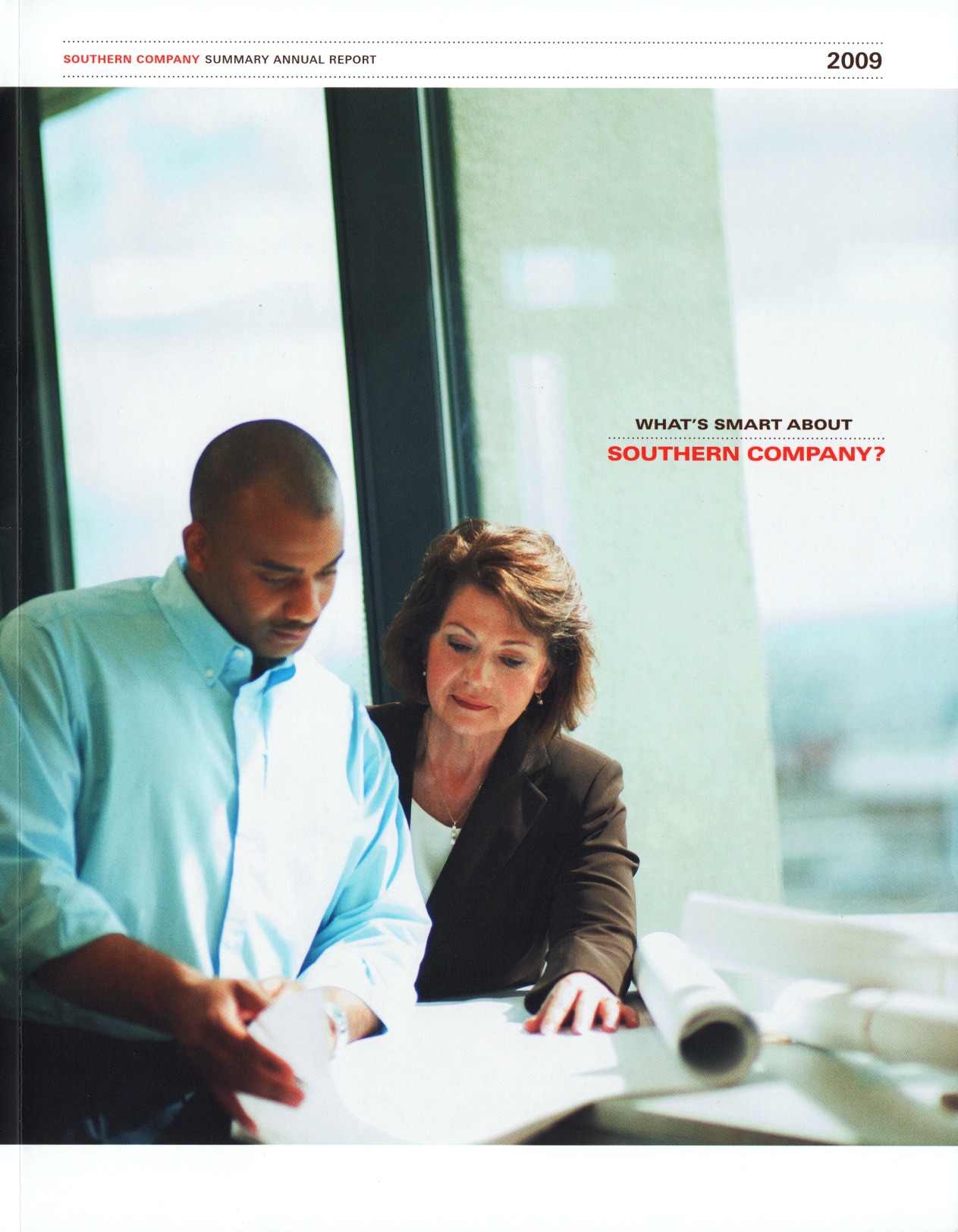| Company Name: | Southern Company  | | Company Web Site: | www.southerncompany.com | | Annual Revenue: | $10+ billion | | Employee Base: | 10,000+ Employees | | Core Industry: | Utilities — Electric | | Type of Report: | Summary Annual Report | | Title/Theme: | "What's Smart About Southern Company?" | | Award Garnered: | Platinum | | Top 100 Rank: | 99 | | | | Judging Results | | First Impression: | | | Report Cover: | | | Letter to Shareholders: | | | Report Narrative: | | | Report Financials: | | | Creativity: | | | Message Clarity: | | | Information Accessibility: | | | Total Score: | |