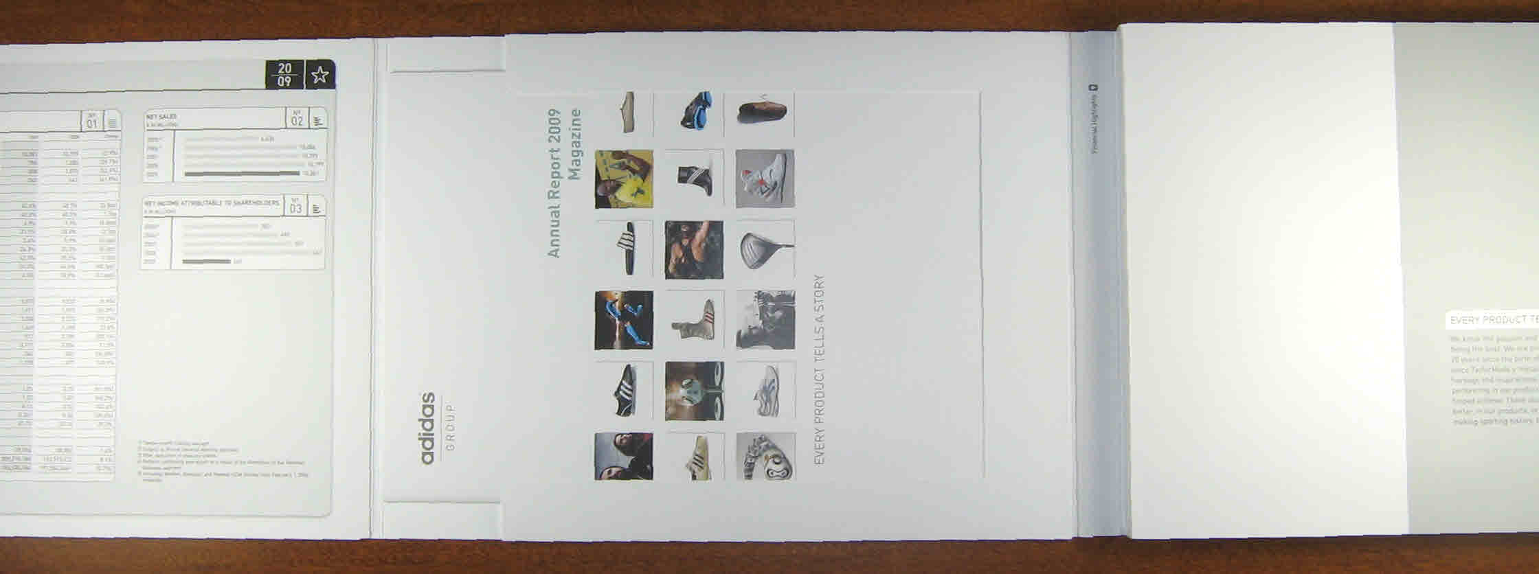 Best Practices in Annual Report Design & Communications As Updated & Compiled from Award-Winning Annual Reports of LACP's 2009 Vision Awards Competition | ANATOMY OF A TOP-TIER REPORT: FOLDOUTS |  | | | | | | | adidas took advantage of the foldout front cover to embed a special magazine for annual report recipients. | | | | | | | |  | |