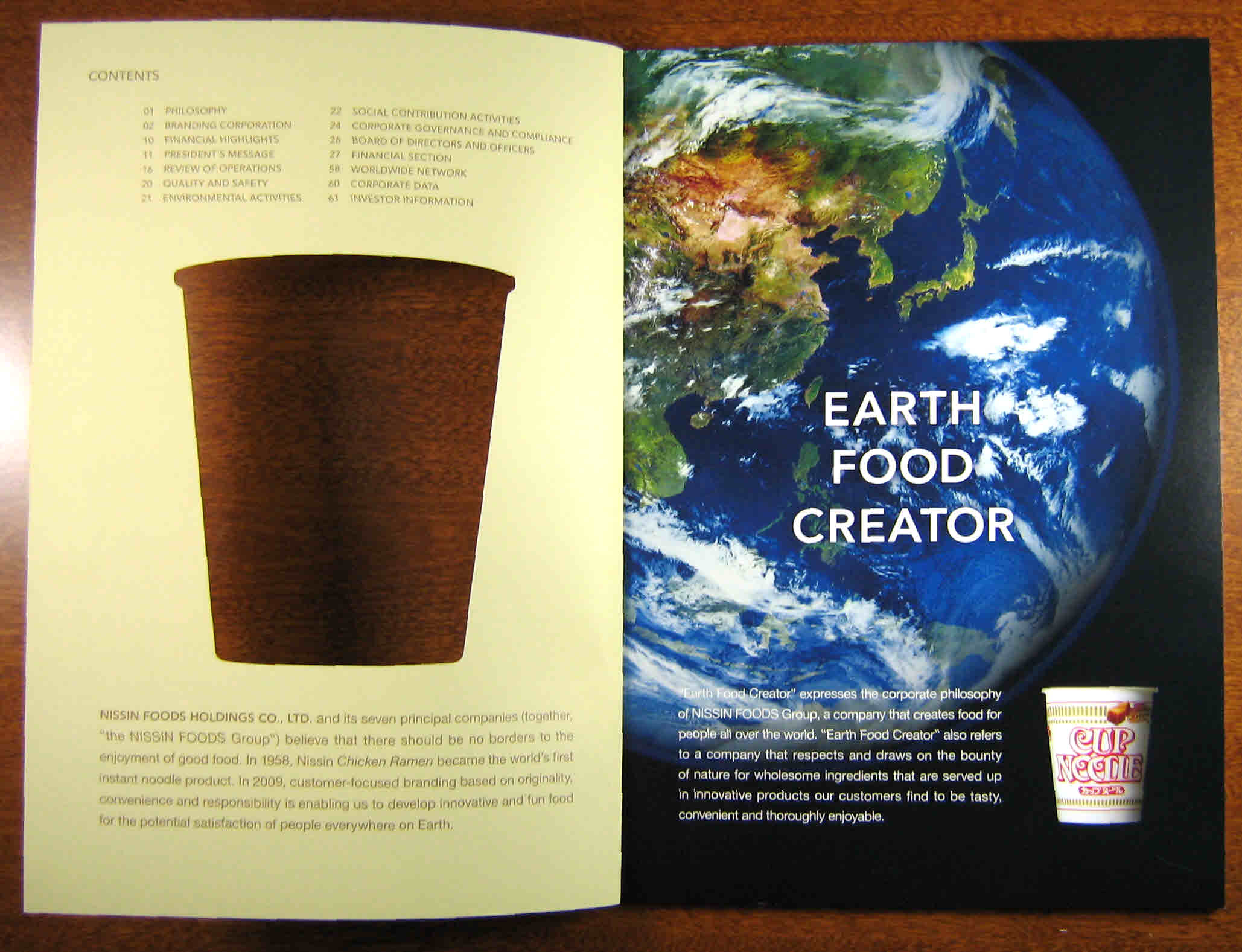 Best Practices in Annual Report Design & Communications As Updated & Compiled from Award-Winning Annual Reports of LACP's 2009 Vision Awards Competition | DIE-CUTS |  | | | | | | | In this example, the die-cut follows the design of NISSIN's universally recognized Cup of Noodles. We find this clever in highlighting brand recognition and strength. Die-cuts are also welcome for creating tabs. | | | | | | | |  | |