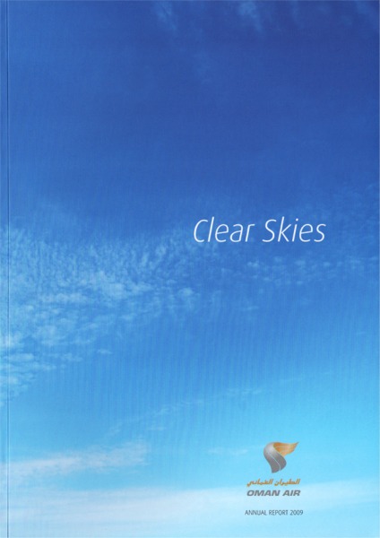 | Company/Agency Name: | Oman Air  / Smart Media (PVT) Ltd. | | Company/Agency Web Site: | www.omanair.com / www.smart.lk | | Annual Revenue: | $100 million - $1 billion | | Employee Base: | 1,000 - 10,000 Employees | | Core Industry: | Transportation & Logistics | | Type of Report: | Annual Report | | Title/Theme: | "Clear Skies" | | Award Garnered: | Silver | | | | Judging Results | | First Impression: | | | Report Cover: | | | Letter to Shareholders: | | | Report Narrative: | | | Report Financials: | | | Creativity: | | | Message Clarity: | | | Information Accessibility: | | | Total Score: | |
