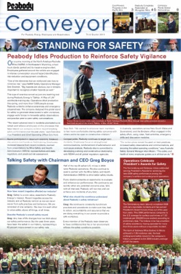 Entry Highlights: View Competition Class Performance | Company Name: | Peabody Energy  | | Company Web Site: | www.peabodyenergy.com | | Project Name: | "Conveyor" Magazine Q3 2010 | | Competition Category: | Print: Magazine/Newsletter | | Annual Revenue: | $1+ billion | | Employee Base: | 1,000 - 10,000 Employees | | Award Garnered: | Bronze | | Top 50 Rank: | 41 | | | | Judging Results | | First Impression: | | | Overall Narrative: | | | Overall Visual Design: | | | Creativity: | | | Message Clarity: | | | Perceived Relevance: | | | Total Score: | |