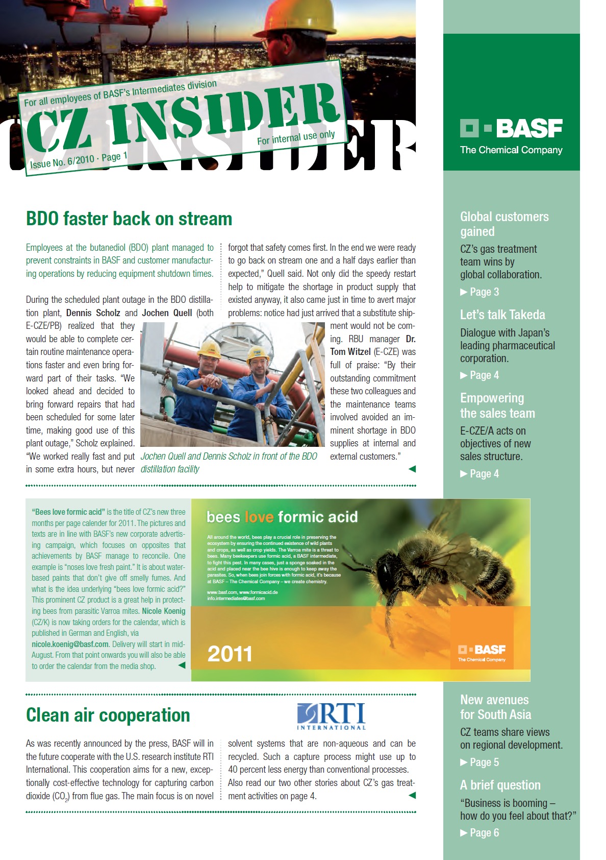 | Company Name: | BASF SE  | | Company Web Site: | www.intermediates.basf.com | | Annual Revenue: | Up to $10 million | | Employee Base: | 1,000 - 10,000 Employees | | Publication/Project Name: | "CZ Insider" | | Publication Format: | Multiple | Monthly | | Primary Audience: | Employees | | Award Garnered: | Silver | | Top 50 Rank: | 25 | | | | Judging Results | | First Impression: | | | Artwork: | | | Readability: | | | Creativity: | | | Message Clarity: | | | Variety of Features: | | | Audience Focus: | | | Perceived Relevance: | | | Ease of Navigation: | | | Total Score: | |