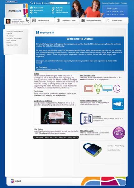 | Company Name: | Astral  | | Company Web Site: | www.astral.com | | Company Ticker Symbol: | ACM.A ACM.B | | Annual Revenue: | $100 million - $1 billion | | Employee Base: | 1,000 - 10,000 Employees | | Publication/Project Name: | AstralNet Intranet | | Publication Format: | Web/E-Mail/Electronic | Daily | | Primary Audience: | Employees | | Award Garnered: | Platinum | | Top 50 Rank: | 18 | | | | Judging Results | | First Impression: | | | Artwork: | | | Readability: | | | Creativity: | | | Message Clarity: | | | Variety of Features: | | | Audience Focus: | | | Perceived Relevance: | | | Ease of Navigation: | | | Total Score: | |