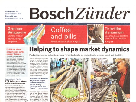 | Company/Agency Name: | Robert Bosch GmbH  / KircherBurkhardt GmbH | | Company/Agency Web Site: | www.bosch.de / www.kircher-burkhardt.com | | Annual Revenue: | $100 million - $1 billion | | Employee Base: | 10,000+ Employees | | Publication/Project Name: | "Bosch-Zünder" | | Publication Format: | Print | Bi-Monthly | | Primary Audience: | Employees | | Award Garnered: | Platinum | | Top 50 Rank: | 5 | | | | Judging Results | | First Impression: | | | Artwork: | | | Readability: | | | Creativity: | | | Message Clarity: | | | Variety of Features: | | | Audience Focus: | | | Perceived Relevance: | | | Ease of Navigation: | | | Total Score: | |