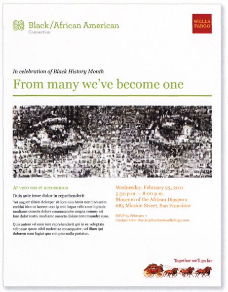| Company Name: | Wells Fargo Team Member Marketing  | | Annual Revenue: | $1+ billion | | Employee Base: | 10,000+ Employees | | Publication/Project Name: | "Wells Fargo Team Member Networks" | | Publication Format: | Multiple | One-Time | | Primary Audience: | Employees | | Award Garnered: | Silver | | Top 50 Rank: | 33 | | | | Judging Results | | First Impression: | | | Artwork: | | | Readability: | | | Creativity: | | | Message Clarity: | | | Variety of Features: | | | Audience Focus: | | | Perceived Relevance: | | | Ease of Navigation: | | | Total Score: | |