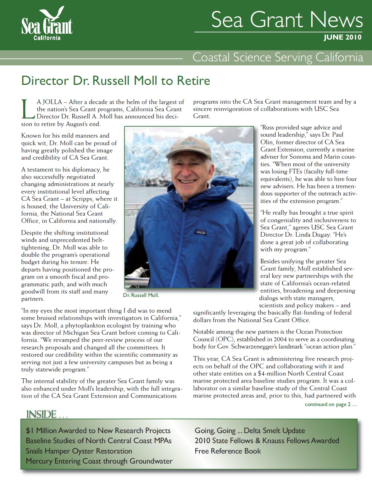 Entry Highlights: View Competition Class Performance | Company Name: | California Sea Grant  | | Company Web Site: | www.csgc.ucsd.edu | | Project Name: | "A Tribute to our Retiring Director" | | Competition Category: | Print: Article | | Annual Revenue: | Up to $10 million | | Employee Base: | Up to 100 Employees | | Award Garnered: | Gold | | Top 100 Rank: | 86 | | | | Judging Results | | First Impression: | | | Overall Narrative: | | | Overall Visual Design: | | | Creativity: | | | Message Clarity: | | | Perceived Relevance: | | | Total Score: | |