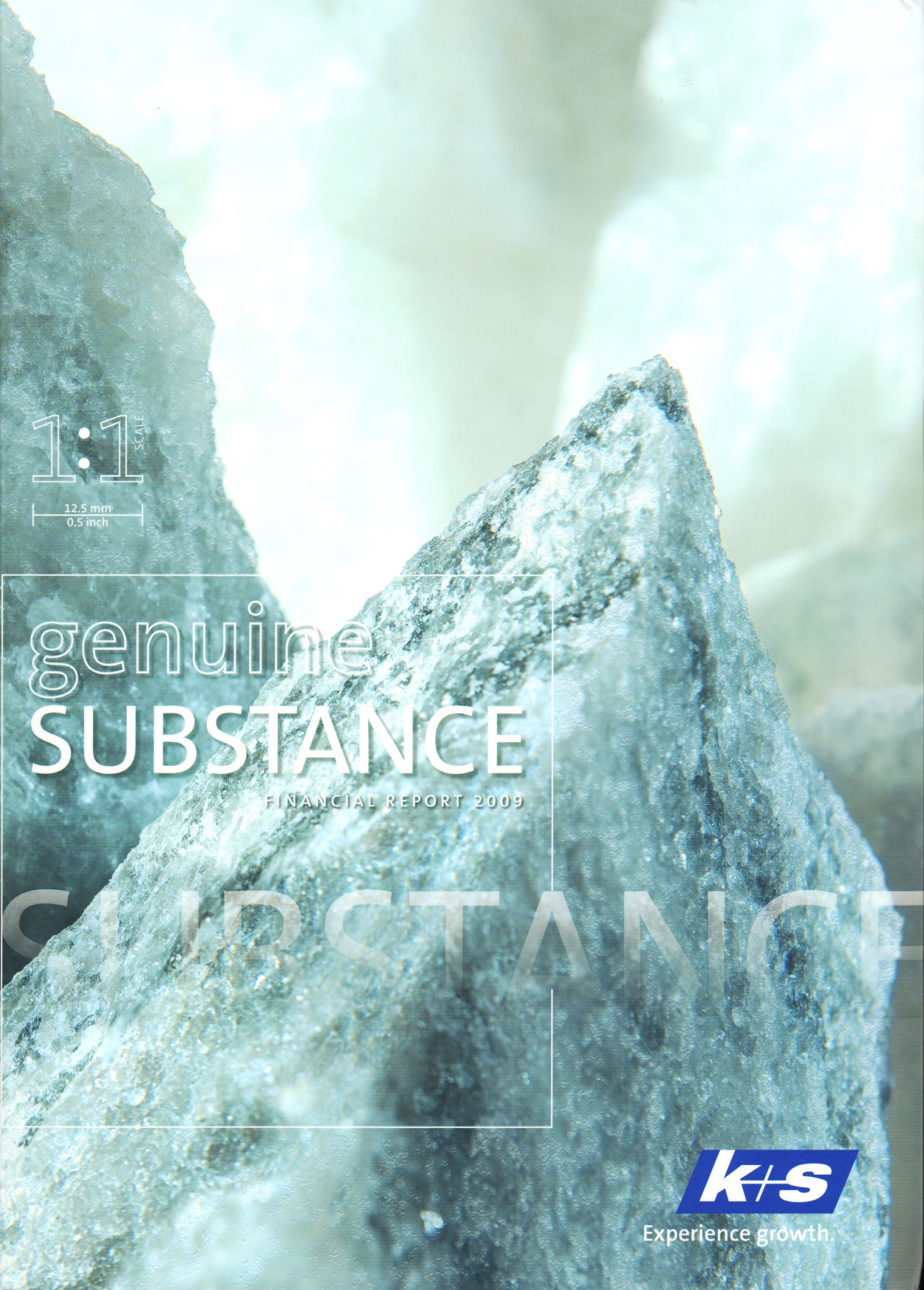 Entry Highlights: View Competition Class Performance | Company/Agency Name: | K+S AG  / Red Cell Werbeagentur GmbH | | Company/Agency Web Site: | www.k-plus-s.com / www.redcell.de | | Company Ticker Symbol: | DE000716200 | | Project Name: | "Genuine Substance" | | Competition Category: | Print: Annual Report | | Annual Revenue: | $1+ billion | | Employee Base: | 10,000+ Employees | | Award Garnered: | Gold | | Top 100 Rank: | 12 | | | | Judging Results | | First Impression: | | | Overall Narrative: | | | Overall Visual Design: | | | Creativity: | | | Message Clarity: | | | Perceived Relevance: | | | Total Score: | |