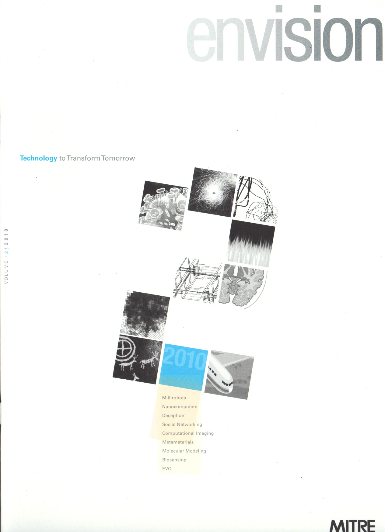 Entry Highlights: View Competition Class Performance | Company Name: | MITRE  | | Company Web Site: | www.mitre.org | | Project Name: | "Envision" | | Competition Category: | Print: Magazine/Newsletter | | Annual Revenue: | $100 million - $1 billion | | Employee Base: | 1,000 - 10,000 Employees | | Award Garnered: | Bronze | | | | Judging Results | | First Impression: | | | Overall Narrative: | | | Overall Visual Design: | | | Creativity: | | | Message Clarity: | | | Perceived Relevance: | | | Total Score: | |