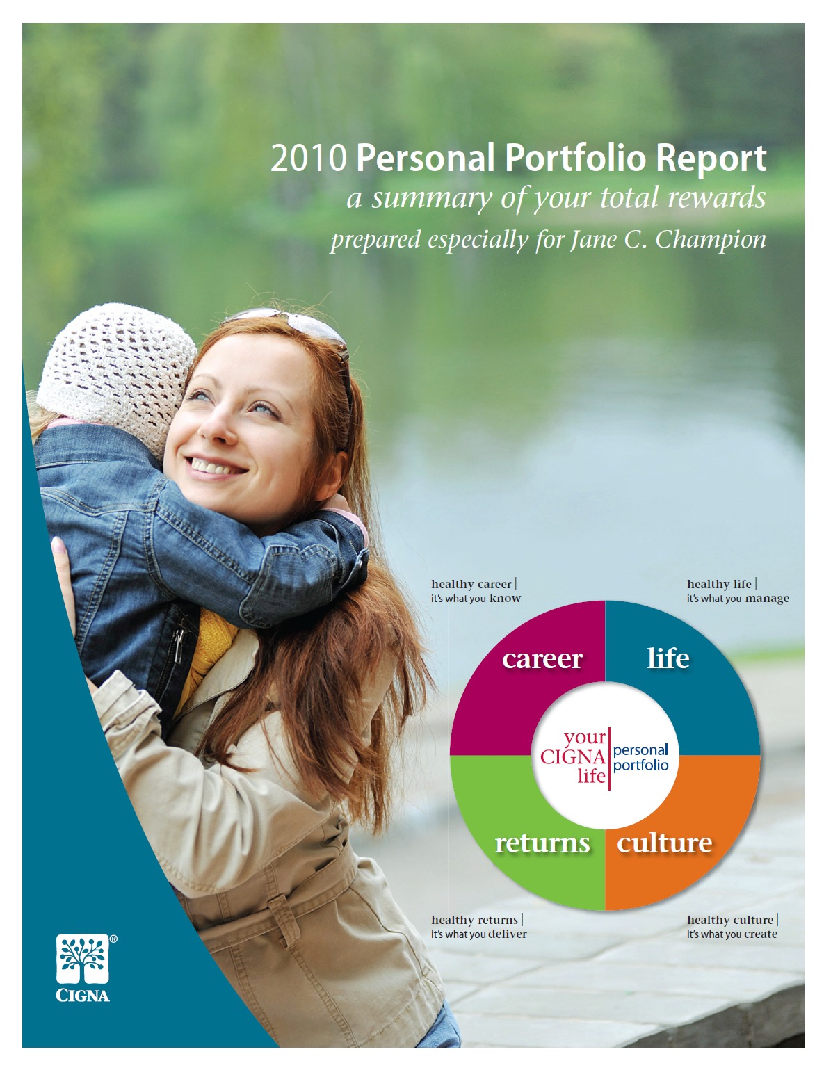 Entry Highlights: View Competition Class Performance | Company/Agency Name: | CIGNA  / AON Consulting / Benefacts | | Company/Agency Web Site: | www.cigna.com / www.aon.com | | Project Name: | The 2010 Personal Portfolio Report | | Competition Category: | Print: Mailers, Statements and Reports | | Annual Revenue: | $1+ billion | | Employee Base: | 10,000+ Employees | | Award Garnered: | Gold | | Top 100 Rank: | 45 | | | | Judging Results | | First Impression: | | | Overall Narrative: | | | Overall Visual Design: | | | Creativity: | | | Message Clarity: | | | Perceived Relevance: | | | Total Score: | |