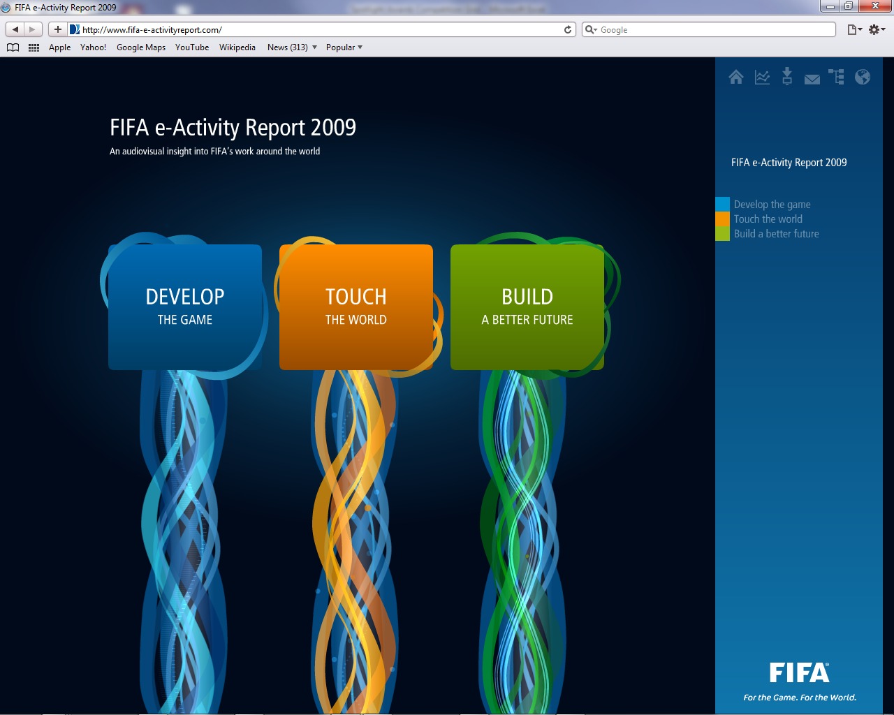 Entry Highlights: View Competition Class Performance | Company/Agency Name: | FIFA  / medienfabrik Gütersloh GmbH | | Company/Agency Web Site: | www.fifa-e-activityreport.com / www.medienfabrik.de | | Project Name: | The FIFA e-activity report | | Competition Category: | Online: Annual/Sustainability Report | | Annual Revenue: | $100 million - $1 billion | | Employee Base: | 1,000 - 10,000 Employees | | Award Garnered: | Gold | | Top 100 Rank: | 87 | | | | Judging Results | | First Impression: | | | Overall Narrative: | | | Overall Visual Design: | | | Creativity: | | | Message Clarity: | | | Perceived Relevance: | | | Total Score: | |
