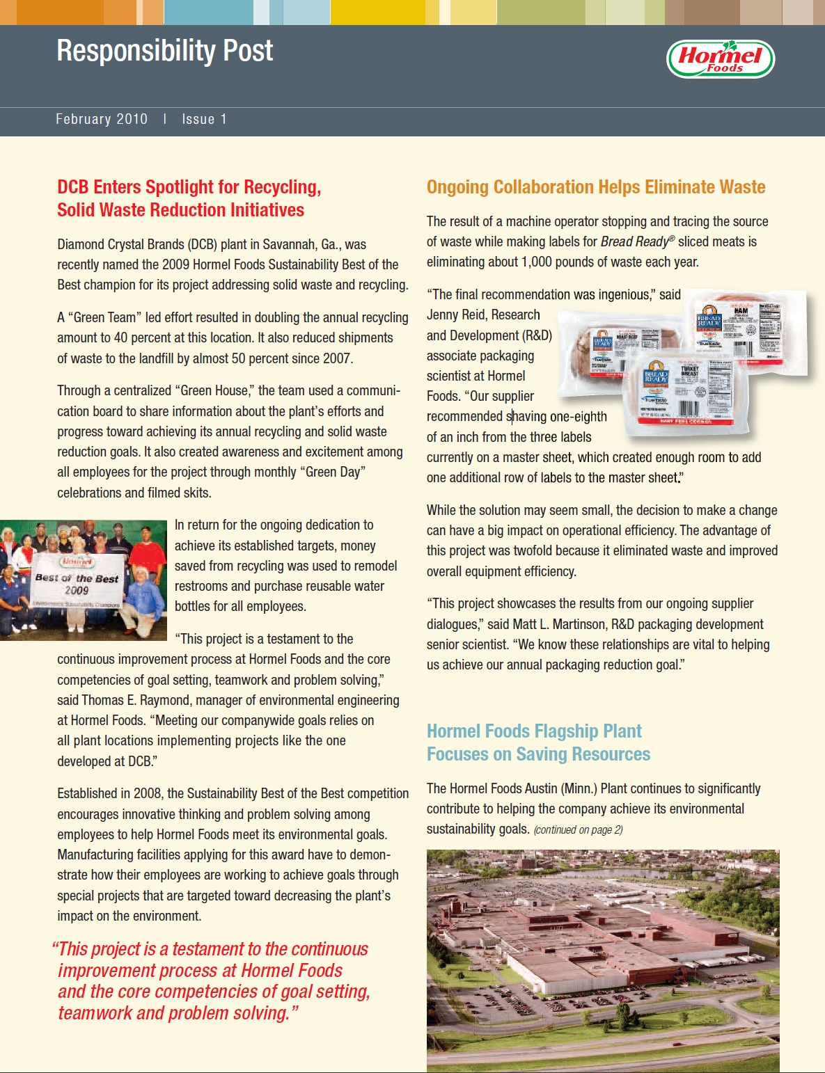 Entry Highlights: View Competition Class Performance | Company/Agency Name: | Hormel Foods  / Burson-Marsteller | | Company/Agency Web Site: | www.hormelfoods.com / www.burson-marsteller.com | | Company Ticker Symbol: | HRL | | Project Name: | The Hormel Foods Responsibility Post | | Competition Category: | Online: Newsletter/Magazine/E-mail-Based Feature | | Annual Revenue: | $1+ billion | | Employee Base: | 10,000+ Employees | | Award Garnered: | Gold | | Top 100 Rank: | 24 | | | | Judging Results | | First Impression: | | | Overall Narrative: | | | Overall Visual Design: | | | Creativity: | | | Message Clarity: | | | Perceived Relevance: | | | Total Score: | |