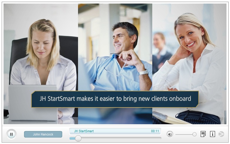 Entry Highlights: View Competition Class Performance | Company Name: | John Hancock Retirement Plan Services  | | Company Web Site: | www.johnhancock.com | | Company Ticker Symbol: | MFC | | Project Name: | The JH StartSmart Flash Presentation | | Competition Category: | Video/Audio: Product/Service Video | | Annual Revenue: | $1+ billion | | Employee Base: | 10,000+ Employees | | Award Garnered: | Gold | | | | Judging Results | | First Impression: | | | Overall Narrative: | | | Overall Visual Design: | | | Creativity: | | | Message Clarity: | | | Perceived Relevance: | | | Total Score: | |