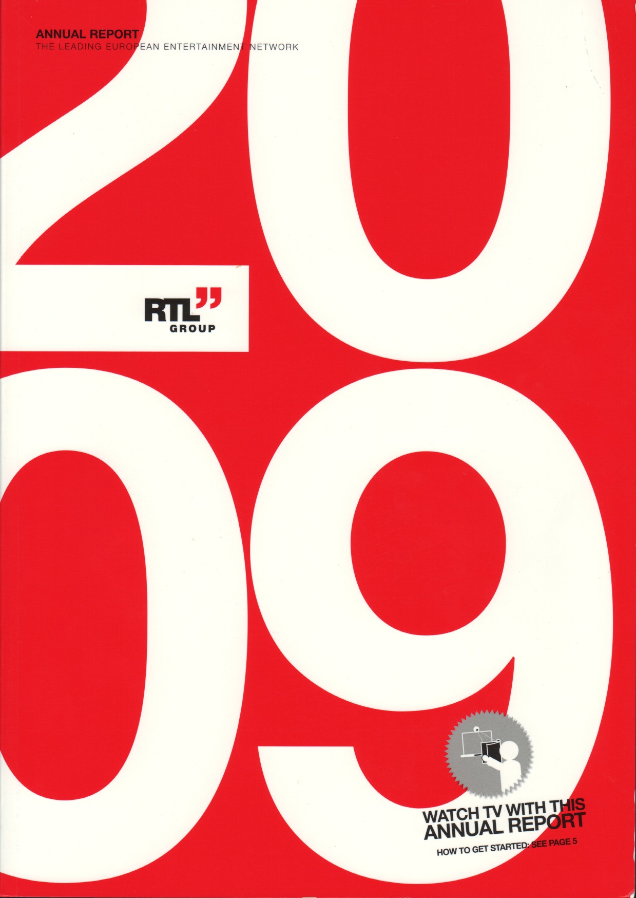 Entry Highlights: View Competition Class Performance | Company/Agency Name: | RTL Group  / ringzwei | | Company/Agency Web Site: | www.rtlgroup.com / www.ringzwei.com | | Project Name: | The RTL Group Annual Report 2009 | | Competition Category: | Print: Annual Report | | Annual Revenue: | $1+ billion | | Employee Base: | 1,000 - 10,000 Employees | | Award Garnered: | Platinum | | Top 100 Rank: | 13 | | | | Judging Results | | First Impression: | | | Overall Narrative: | | | Overall Visual Design: | | | Creativity: | | | Message Clarity: | | | Perceived Relevance: | | | Total Score: | |