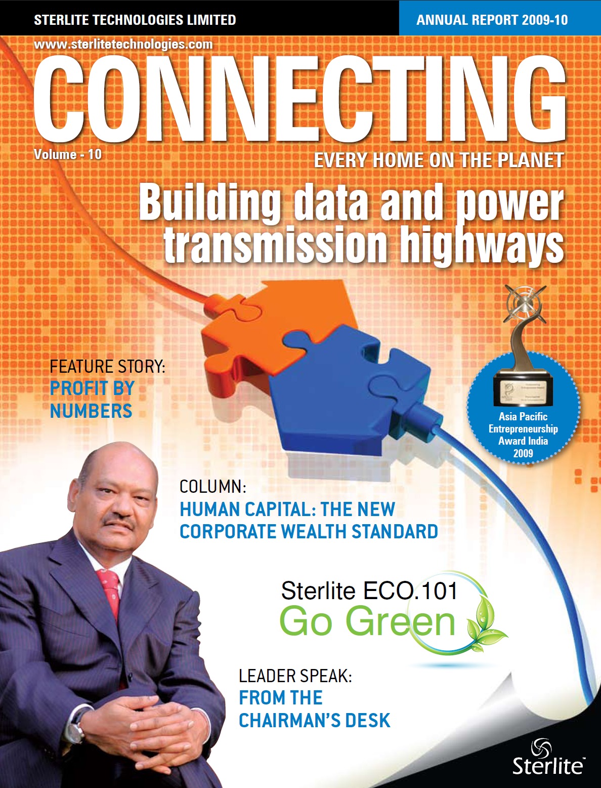 Entry Highlights: View Competition Class Performance | Company/Agency Name: | Sterlite Technologies Limited  / Quadrum Solutions Pvt. Ltd. | | Company/Agency Web Site: | www.sterlitetechnologies.com / www.quadrumltd.com | | Project Name: | The Sterlite Technologies Annual Report FY'10 | | Competition Category: | Print: Annual Report | | Annual Revenue: | $100 million - $1 billion | | Employee Base: | 100 - 1,000 Employees | | Award Garnered: | Gold | | Top 100 Rank: | 33 | | | | Judging Results | | First Impression: | | | Overall Narrative: | | | Overall Visual Design: | | | Creativity: | | | Message Clarity: | | | Perceived Relevance: | | | Total Score: | |