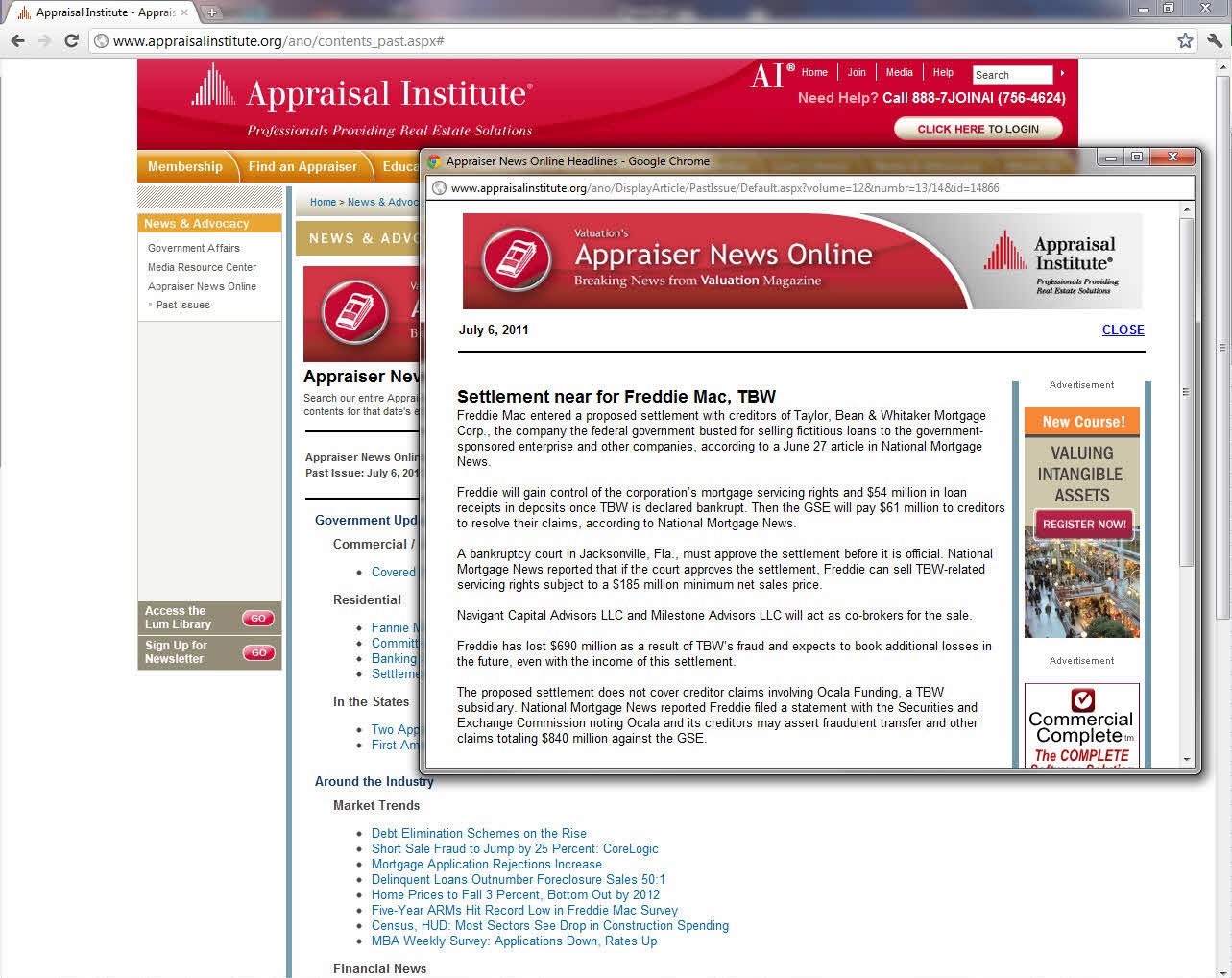 Entry Highlights: View Competition Class Performance | Company Name: | Appraisal Institute  | | Company Web Site: | www.appraisalinstitute.org | | Project Name: | "Appraiser News Online" | | Competition Category: | Web/Digital: Newsletter/Magazine | | Annual Revenue: | Up to $10 million | | Employee Base: | Up to 100 Employees | | Award Garnered: | Gold | | | | Judging Results | | First Impression: | | | Overall Narrative: | | | Overall Visual Design: | | | Creativity: | | | Message Clarity: | | | Perceived Relevance: | | | Total Score: | |