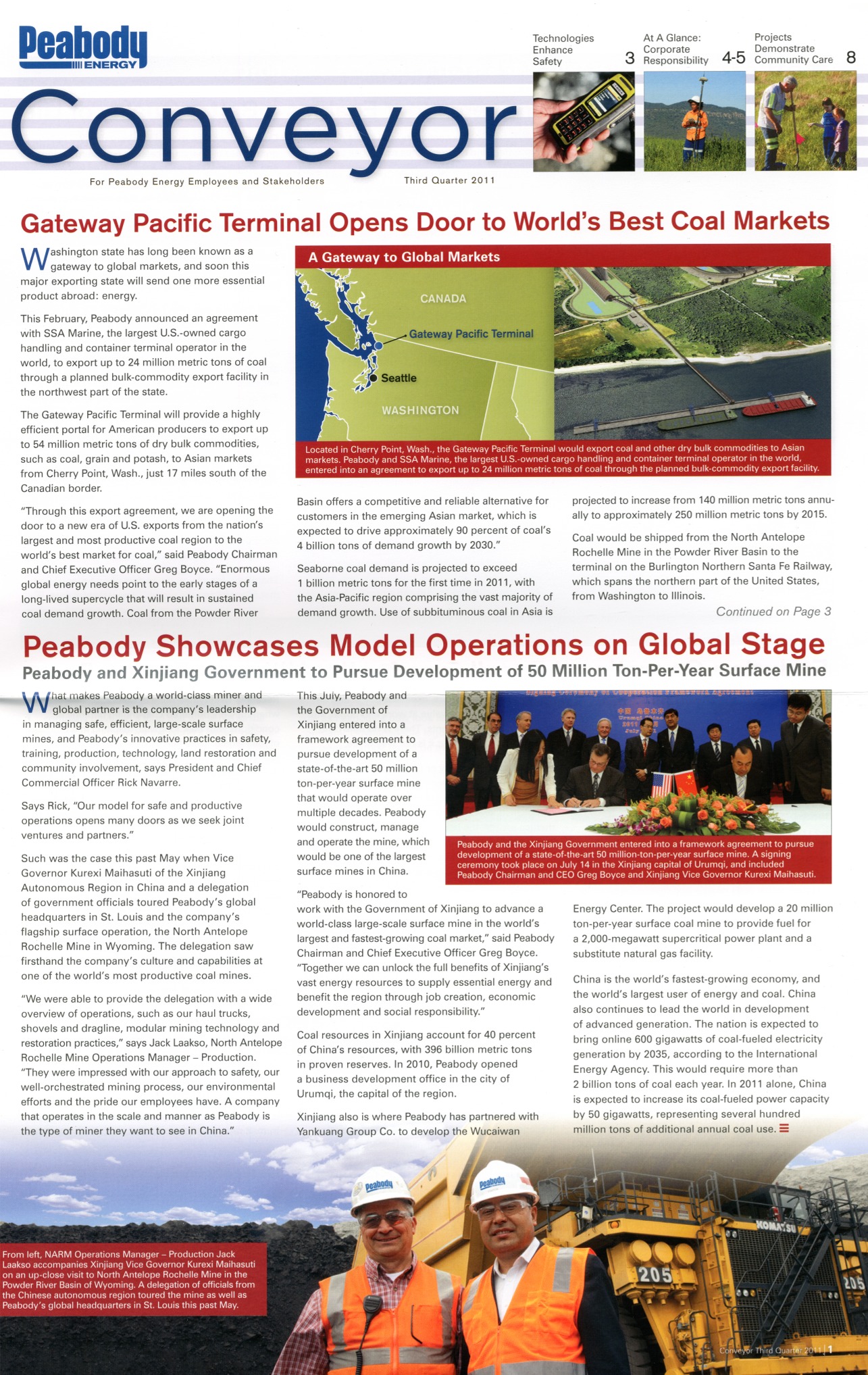 Entry Highlights: View Competition Class Performance | Company Name: | Peabody Energy  | | Company Web Site: | www.peabodyenergy.com | | Project Name: | "Conveyor" Magazine – Q3 2011 | | Competition Category: | Print: Magazine/Newsletter – Quarterly & Near-Quarterly | | Annual Revenue: | $1+ billion | | Employee Base: | 1,000 - 10,000 Employees | | Award Garnered: | Silver | | | | Judging Results | | First Impression: | | | Overall Narrative: | | | Overall Visual Design: | | | Creativity: | | | Message Clarity: | | | Perceived Relevance: | | | Total Score: | |
