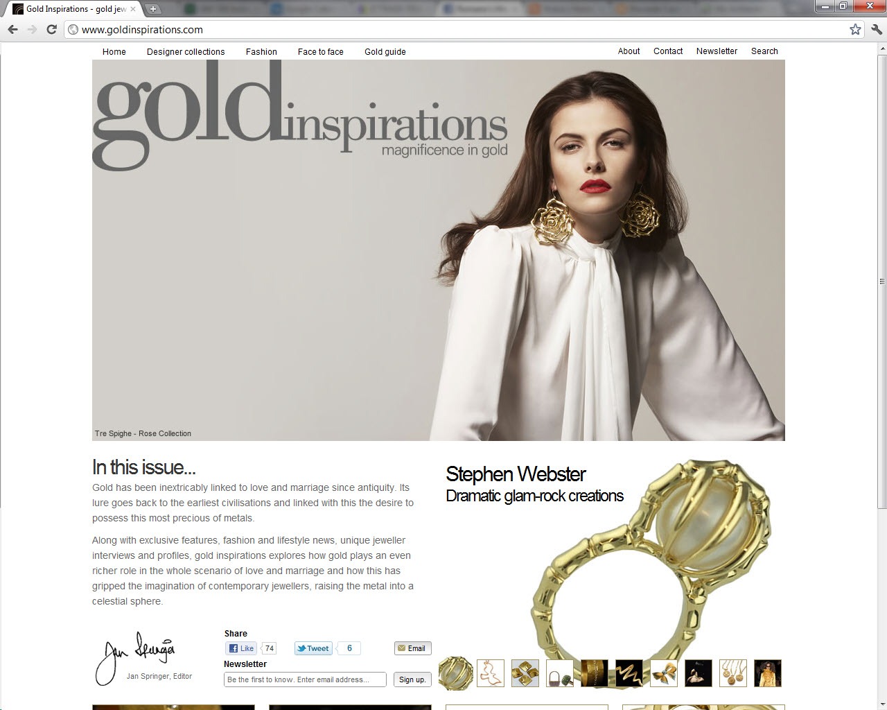 Entry Highlights: View Competition Class Performance | Company/Agency Name: | World Gold Council  / CFP Solutions | | Company/Agency Web Site: | www.gold.org / www.cfp.co.uk | | Project Name: | www.goldinspirations.com | | Competition Category: | Web/Digital: Newsletter/Magazine | | Annual Revenue: | $10 - $100 million | | Employee Base: | Up to 100 Employees | | Award Garnered: | Platinum | | Top 100 Rank: | 22 | | | | Judging Results | | First Impression: | | | Overall Narrative: | | | Overall Visual Design: | | | Creativity: | | | Message Clarity: | | | Perceived Relevance: | | | Total Score: | |
