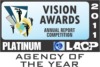 Top Annual Report Agencies of 2011 2011 Vision Awards Annual Report Competition | The following table details the top overall annual report agencies participating in the 2011 Vision Awards. Agencies were ranked by averaging the "overall" scores from their six highest-scoring annual reports. |  |