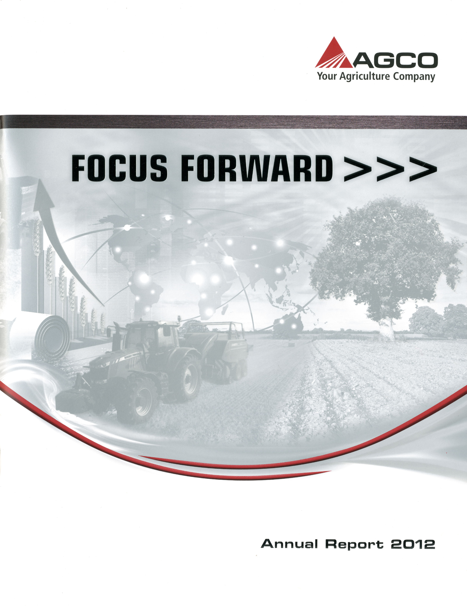 | Company Name: | AGCO Corporation  | | Company Web Site: | www.agcocorp.com | | Annual Revenue: | $1 - $10 billion | | Employee Base: | 10,000+ Employees | | Core Industry: | Agribusiness | | Type of Report: | Annual Report | | Title/Theme: | "Focus Forward" | | Regional Top 50 Rank: | 37 (Americas Region) | | Country-Based Honors: | Top 50 American Reports | | Industry Award Garnered: | Gold | | | | Judging Results | | First Impression: | | | Report Cover: | | | Letter to Shareholders: | | | Report Narrative: | | | Report Financials: | | | Creativity: | | | Message Clarity: | | | Information Accessibility: | | | Total Score: | |